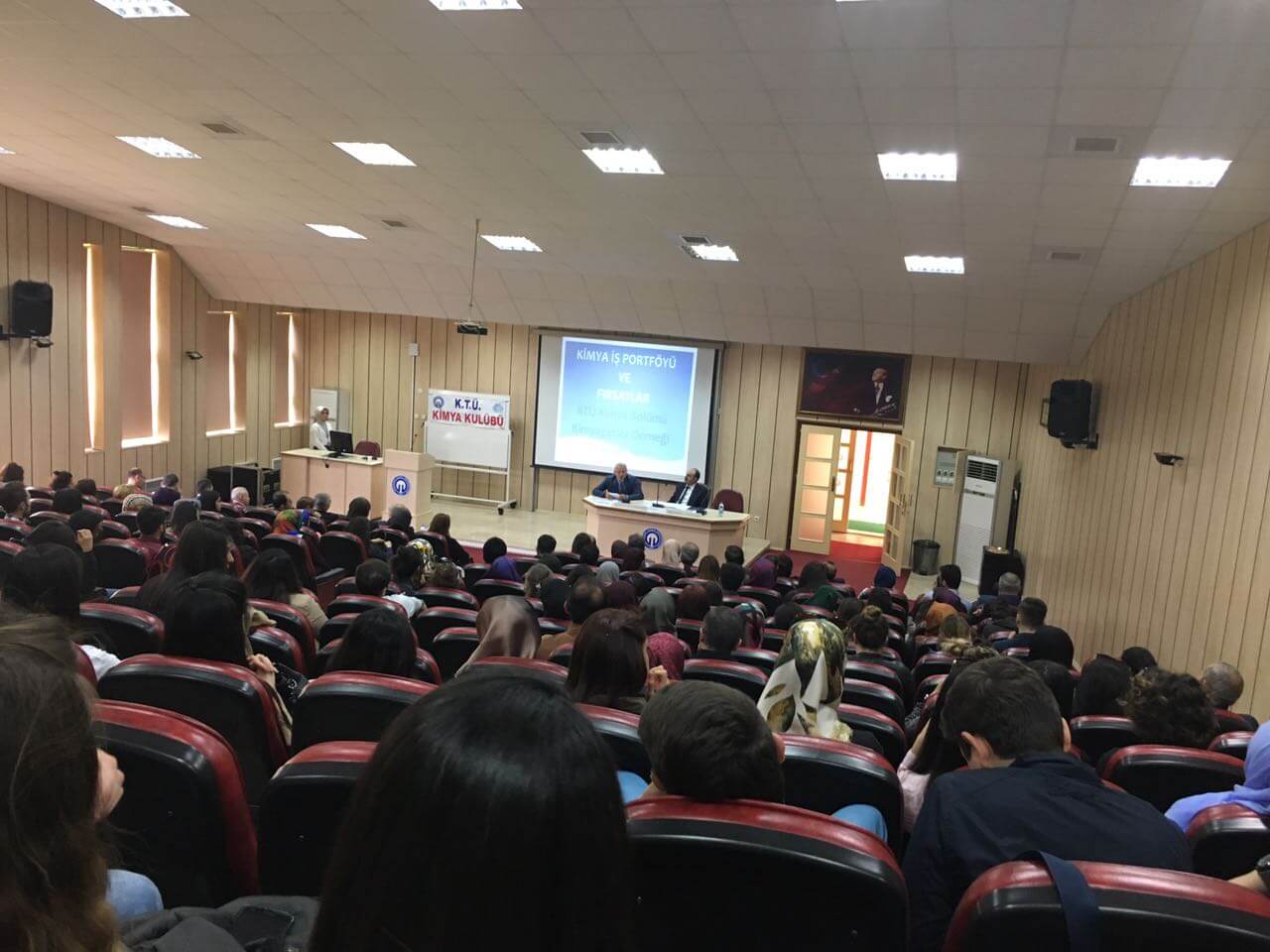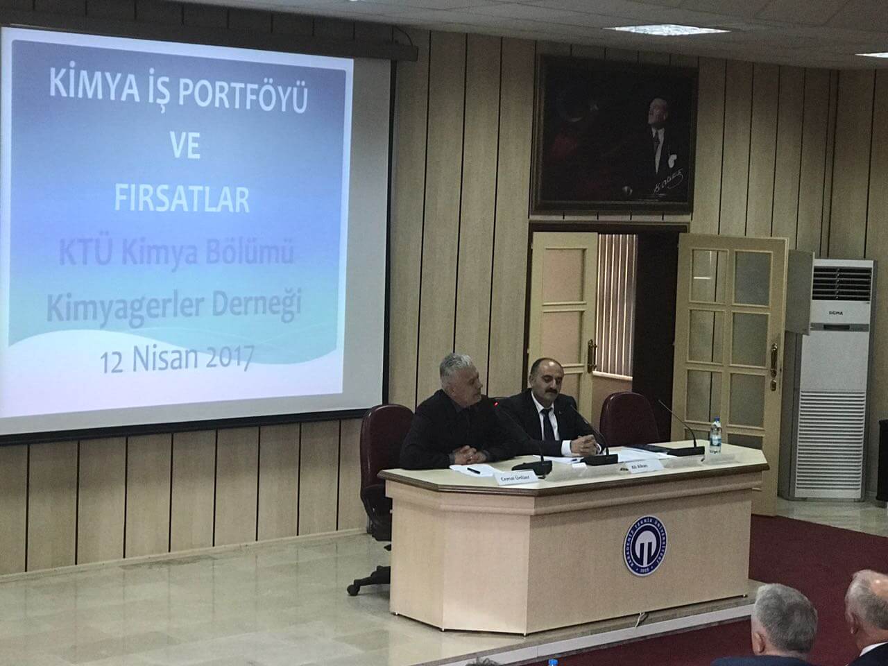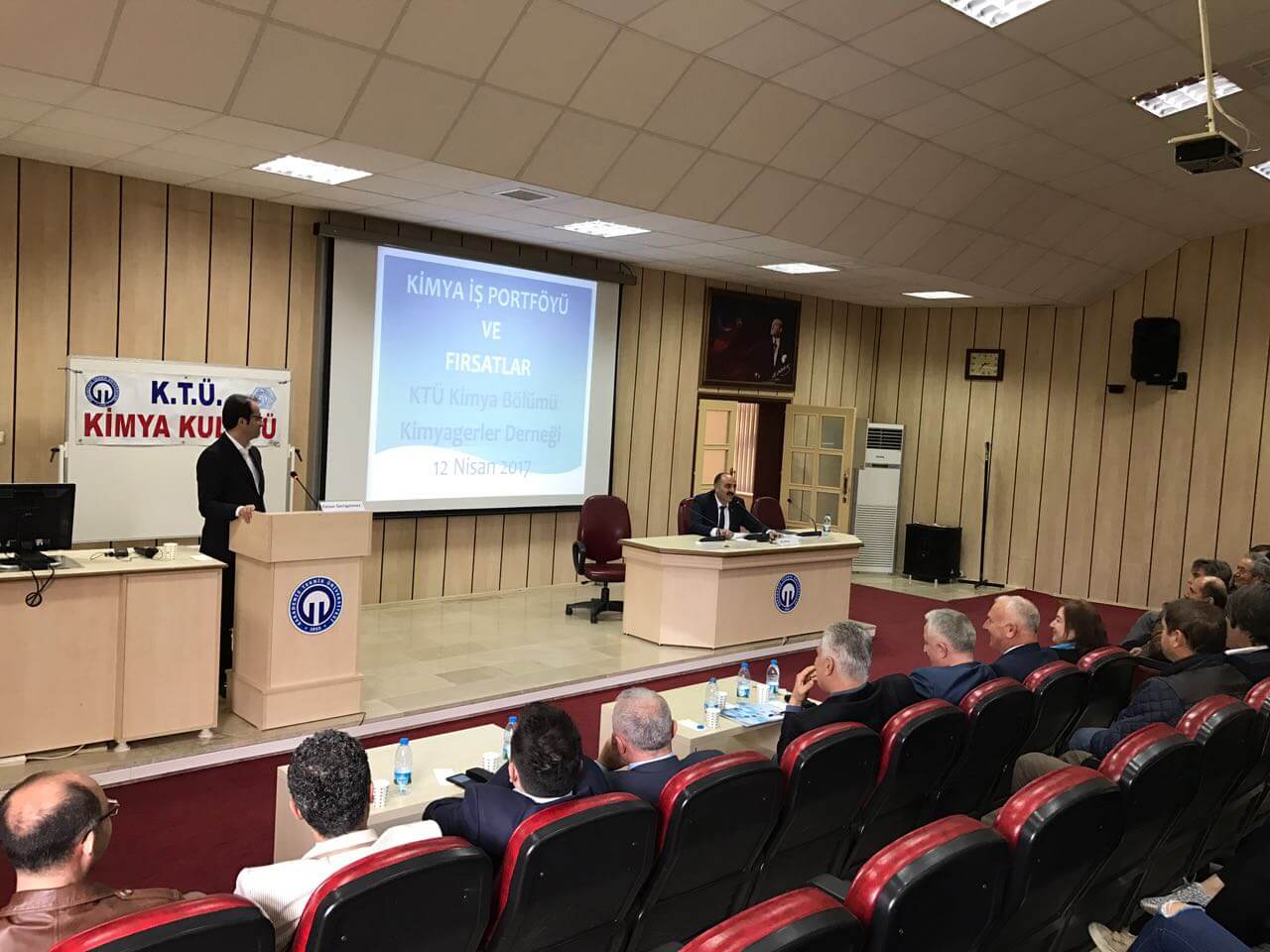 Karadeniz Teknik Üniversitesi Fen Fakültesi Kimya Bölümü ve Kimyagerler Derneği Karadeniz Şubesi tarafından 07-14 Nisan, Kimyagerler Haftası etkinlikleri kapsamında “Kimya İş Portföyü ve Fırsatlar” konulu panel düzenlendi. 12 Nisan 2017 Çarşamba günü saat 14’de Karadeniz Teknik Üniversitesi, Fen Fakültesi, Nazım Terzioğlu Amfisinde gerçekleştirilen panelde tekstil, iş güvenliği, gıda, laboratuvar uygulamaları ve kamu sektörlerinden yönetici/uzman panelistler yer aldı.